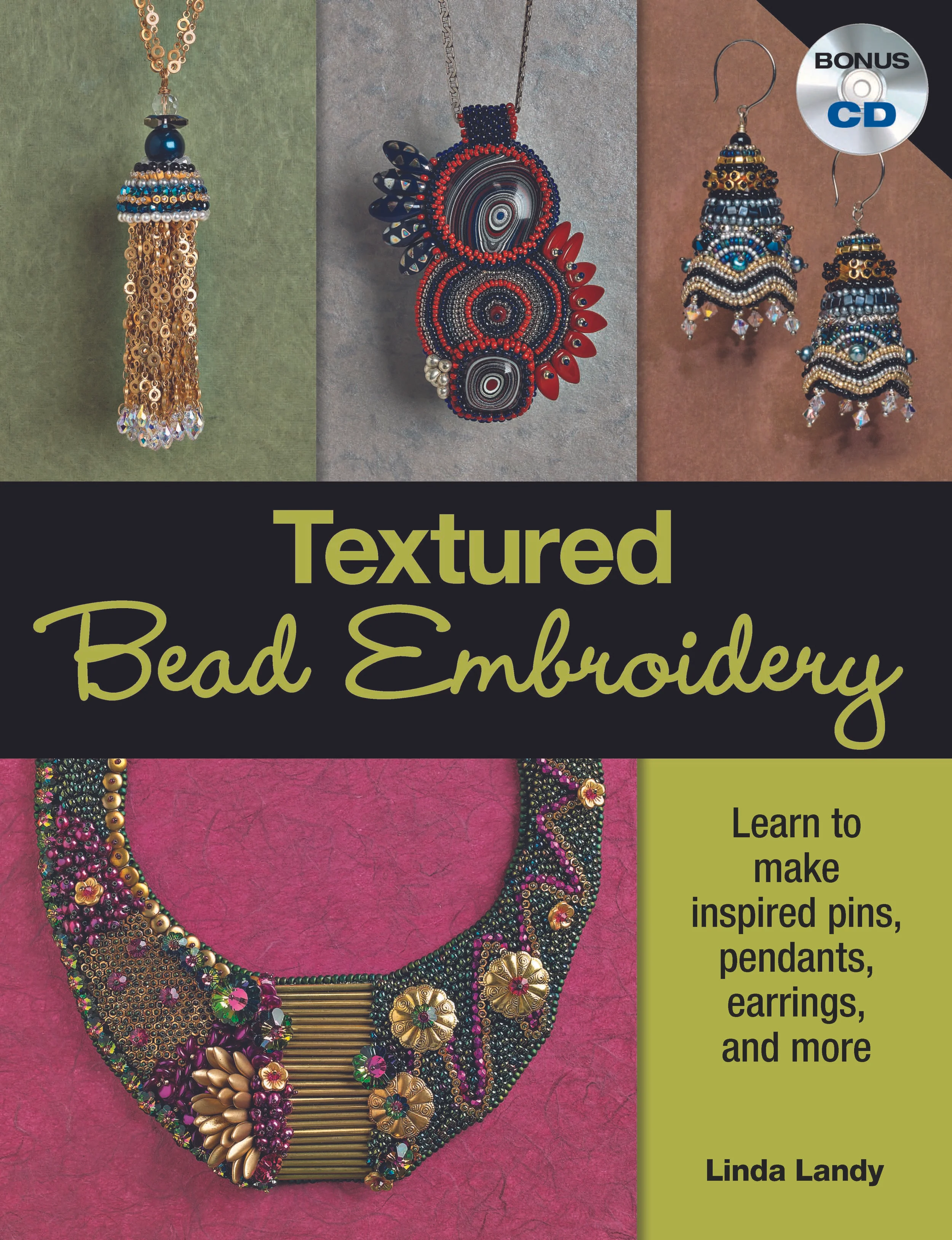 Textured Bead Embroidery offers a new perspective on bead embroidery -- described as "classy with a touch of off-the-wall craziness." Author Linda Landy explains how to use drops, daggers, hexes, triangles, Czech glass and more in uncommon orientations to create works that are sculptural, three dimensional and very textured. Step-by-step instructions are provided for 12 unique earrings, pendants, brooches, bracelets and neckpieces. There’s also a bonus CD with six patterns from the book.